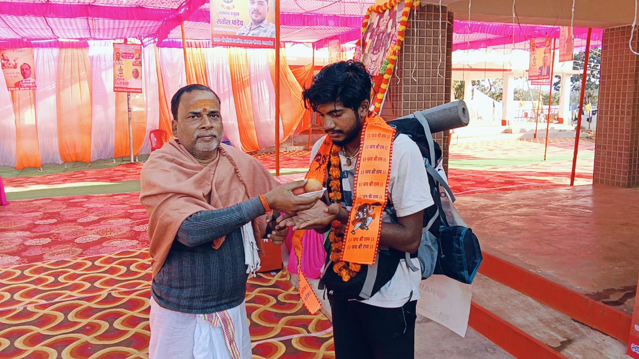 22 वर्षीय शुभम साहु 18 दिन की यात्रा के बाद शुक्रवार को असनहर गांव पहुंचा था ।जहां चल रहे श्रीराम कथा एवं महायज्ञ में सामिल हुआ कथा के यज्ञाचार्य एवं समिति के लोगों ने युवक के साहस को सराहा और समिति ने युवक को अंग वस्त्र देकर सम्मानित किया। यज्ञाचार्य पूजनीय ब्रजदेव पांडेय ने कहा कि सनातन और धर्म जागरण के लिए निकले पद यात्रा से दुसरो को शिक्षा लेनी चाहिए।युवक को इस कार्य के लिए बधाई दी।पैरों और पीठ पर छाले होने के बाद भी पदयात्रा का साहस लिए युवक असनहर गांव पहुंचा था।शुभम नै बताया कि 18 दिन में उडिस से असनहर पहुंचा है एक दिन में चालिस किमी चलने का लक्षय है उडिसा से वैष्णव देवी मन्दिर तक 3500 किमी पदयात्रा का लक्ष्य है। इस दौरान समिति के अध्यक्ष अरविंद दूबे, चन्द्रशेखर, मन्दिर के पूजारी राजेन्द्र शुक्ला, सहित अन्य लोग उपस्थित रहे।
