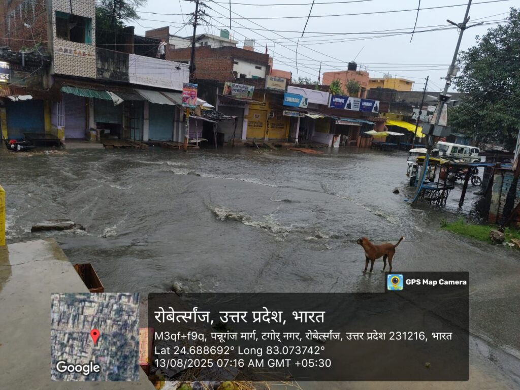 सोनभद्र । तेज़ बरसात ने रॉबर्ट्सगंज नगर पालिका की लापरवाही को फिर बेनकाब कर दिया है। शहर के मुख्य बाजार से लेकर गलियों तक 3 फीट ऊँचाई तक गंदे नाले का पानी भर गया। पानी इतना तेज़ी से आया कि घरों में रखा अनाज, कपड़े, बिस्तर, फर्नीचर और बरतन तक डूबकर खराब हो गए। कई घरों के लोग अपने ही घर में बैठकर “बाढ़ पीड़ित” बन गए, और बच्चों से लेकर बुजुर्ग तक इस गंदे पानी में फंसे रहे।