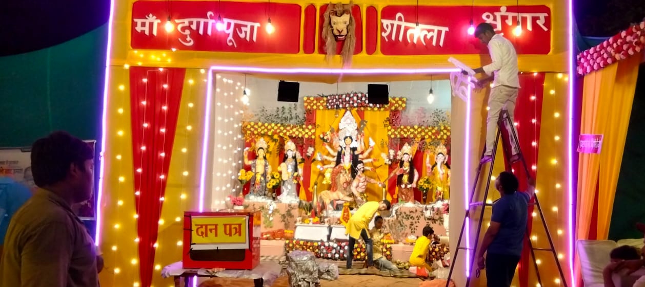 सोनभद्र(उत्तर प्रदेश)। जनपद में घोरावल नगर पंचायत क्षेत्र में सर्वत्र जगत जननी माँ आदिशक्ति का पूजन चल रहा है। इसके मद्देनजर मां दुर्गा पूजा शीतला श्रृंगार समिति घोरावल की तैयारियां रविवार की देर रात तक पूरी कर ली गई। इस बार मंदिर की साज सज्जा को भव्य रूप दिया गया है। मनमोहक तथा क्षेत्र का अद्वितीय सजावट व भव्य रूप देने के लिए जोरदार तैयारी पूरी हो चुकी है। कार्यक्रम संयोजक शिप्पू अग्रहरि ने बताया कि नवरात्रि में मां दुर्गा की प्रतिमा को स्थापित कर भव्य रूप से पंडाल सजाने की तैयारी पूरी कर ली गई है।