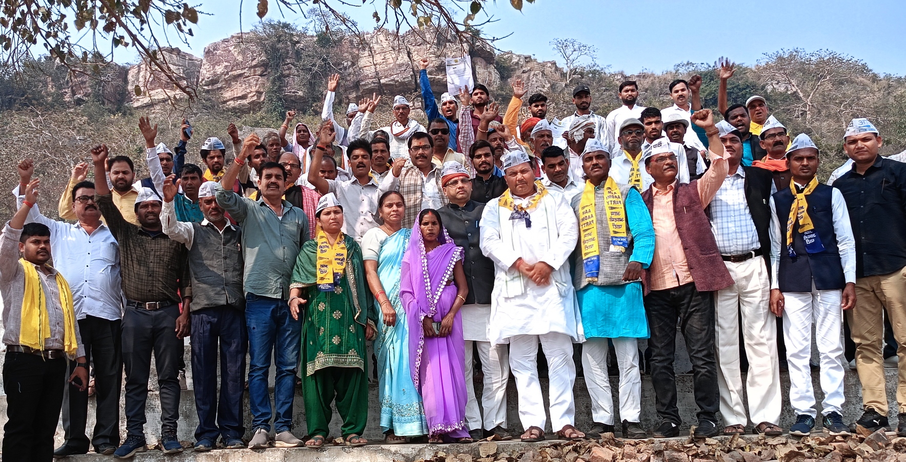 सोनभद्र। आम आदमी पार्टी सोनभद्र के कार्यकर्ताओं ने जिलाध्यक्ष रमेश गौतम के नेतृत्व में मारकुंडी पहाड़ी के ऐतिहासिक स्थल वीर लोरिक स्मारक के पास आगामी पंचायत चुनाव के संदर्भ में संभावित प्रत्याशियों, पदाधिकारियों और कार्यकर्ताओं के साथ आवश्यक बैठक की।