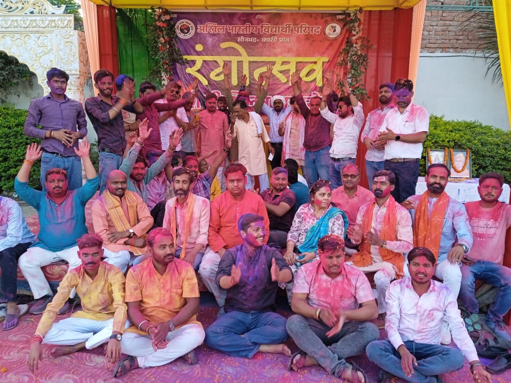 सोनभद्र(उत्तर प्रदेश)। अखिल भारतीय विद्यार्थी परिषद जिला के द्वारा रंगोत्सव “होली मिलन समारोह” का आयोजन सोनभद्र नगर के मैरेज हाल में किया गया। इस दौरान विशेष रूप से प्रांत संगठन मंत्री अभिलाष जी उपस्थित रहें। सभी के एक दूसरे को रंग गुलाल लगाकर होली की हार्दिक बधाई दिया। कलाकारों ने पारंपरिक लोक गीतों एवं बिरहा गा कर नागरिकों का मनोरंजन किया। समाज के विभिन्न नागरिक एवं पूर्व कार्यकर्ता उपस्थित रहें।