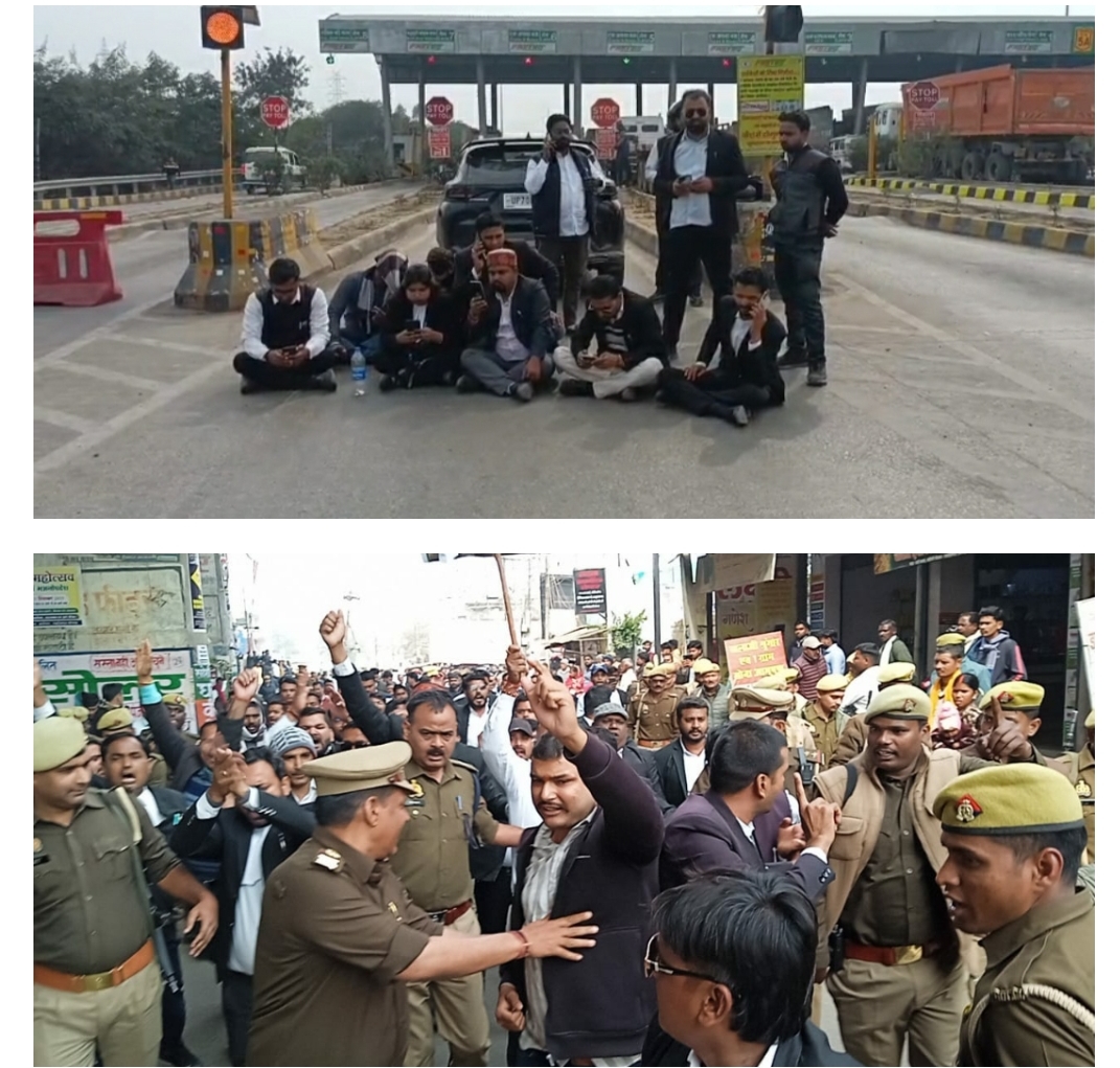 अधिवक्ताओं ने बताया कि रविवार को महिला अधिवक्ता के साथ टोल कर्मियों ने अभद्रता की और मारपीट भी की, जिसमें कई अधिवक्ता घायल हुए। अपर पुलिस अधीक्षक अनिल कुमार ने बताया कि घटना को गंभीरता से लेते हुए दो टोल कर्मियों के खिलाफ मुकदमा दर्ज कर उनकी गिरफ्तारी कर आवश्यक कार्रवाई की जा रही है। अधिवक्ताओं ने साफ चेतावनी दी है कि अगर न्याय नहीं मिला, तो यह आंदोलन सड़क से सदन तक गूंजेगा। उन्होंने कहा कि यह लड़ाई सिर्फ महिला अधिवक्ता के साथ हुई मारपीट की नहीं है, बल्कि यह लड़ाई न्याय और कानून की है।