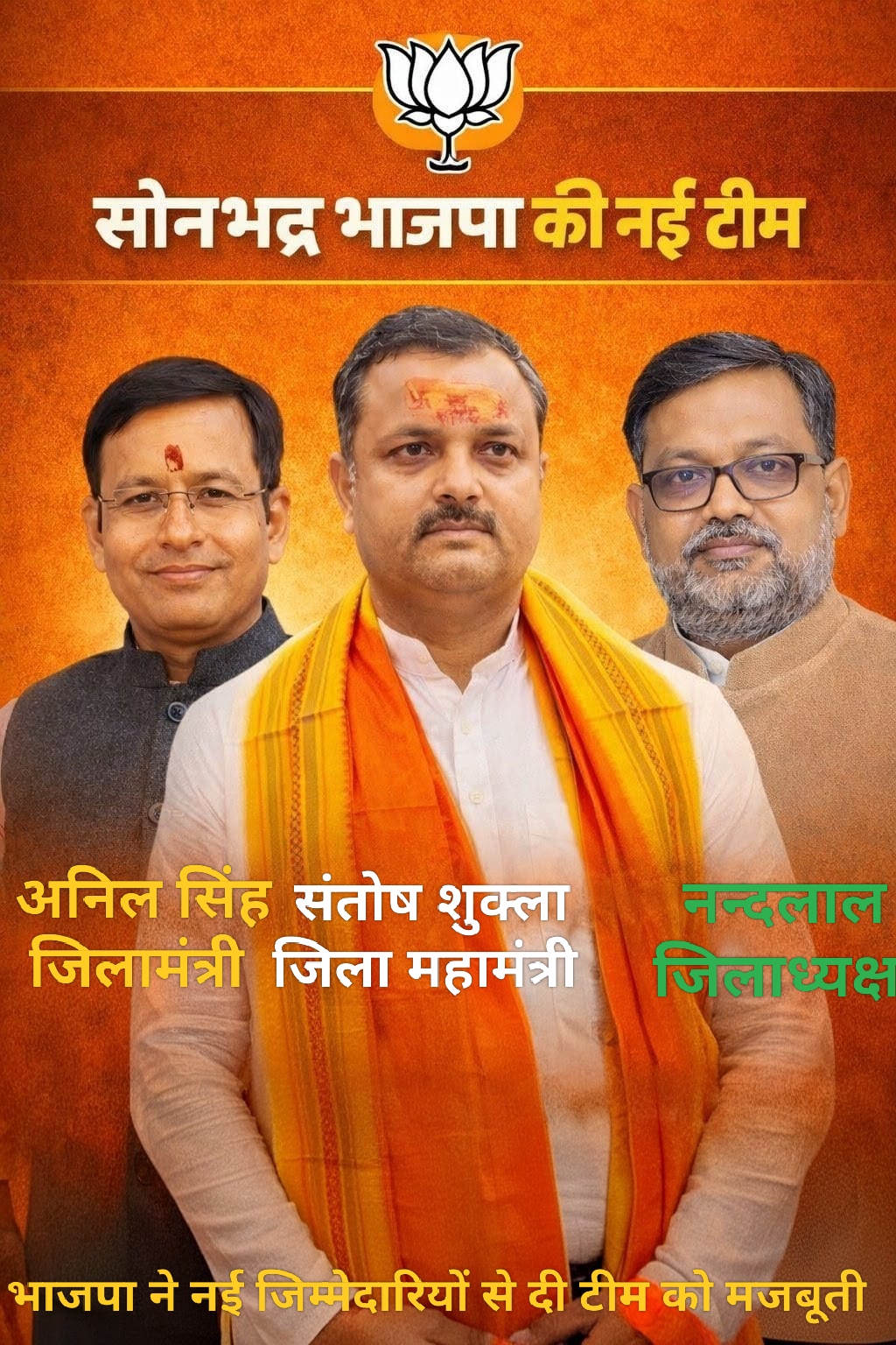 सोनभद्र में यह संगठनात्मक बदलाव यह दर्शाता है कि भाजपा में काबिलियत, मेहनत और निष्ठा को प्राथमिकता देते हुए नेतृत्व को आगे बढ़ाया जा रहा है।