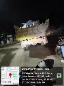 सोनभद्र। खनन विभाग के स्पष्ट निर्देश हैं कि खनन कार्य सूर्योदय से सूर्यास्त तक ही किया जा सकता है, लेकिन जमीनी हकीकत इन आदेशों को ठेंगा दिखाती नजर आ रही है। ओबरा थाना क्षेत्र अंतर्गत खैरटिया गांव मार्ग से अंधेरा होने के बावजूद बोल्डर लदे टिपर धड़ल्ले से गुजरते देखे जा रहे हैं।