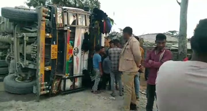 ट्रक का ब्रेक फेल टैंकर चट्टान से भिड़ा, बारूद केमिकल का रिसाव, दो गंभीर