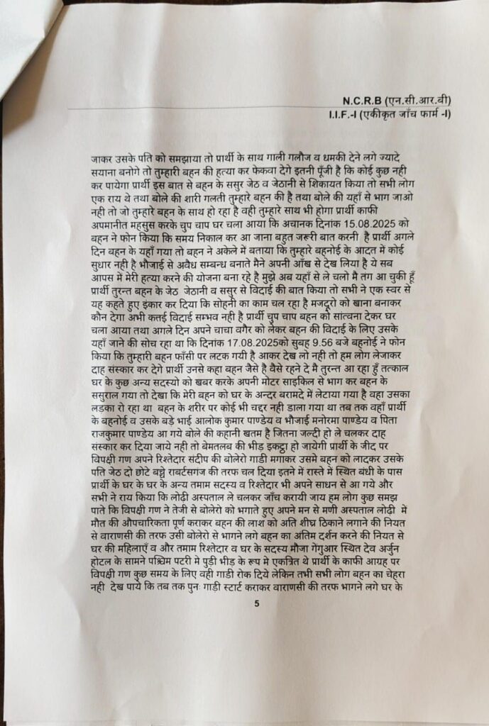 बहन की सन्दिग्ध मौत पर भाई ने ससुराल वालों पर लगाया हत्या का आरोप