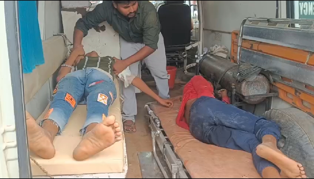 घायलों में बाइक पर सवार दो युवकों की हालत गंभीर।