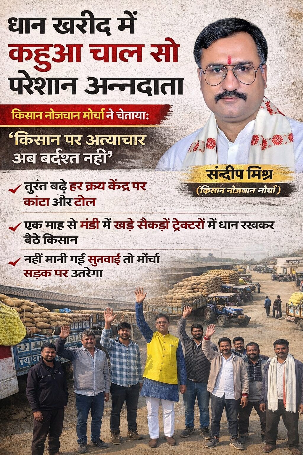 धान खरीद में कछुआ चाल से परेशान अन्नदाता, किसान नौजवान संघर्ष मोर्चा ने चेताया, “किसान पर अत्याचार अब बर्दाश्त नहीं” Read More » January 23, 2026 No Comments