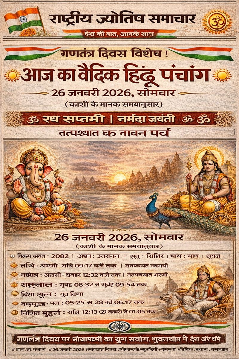 🇮🇳 गणतंत्र दिवस पर भीष्माष्टमी का शुभ संयोग, शुक्ल योग में देश और धर्म दोनों का पर्व Read More » January 25, 2026 No Comments