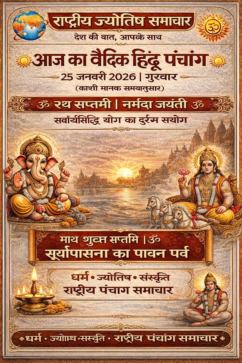 रथ सप्तमी व नर्मदा जयंती के संयोग से बना सर्वार्थसिद्धि योग, सूर्योपासना का विशेष दिन Read More » January 25, 2026 No Comments