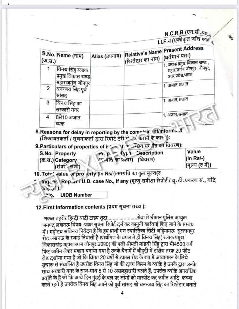स्थानीय लोगों का कहना है कि विरोध करने पर उन्हें धनंजय सिंह का नाम लेकर खुलेआम धमकाया गया। पीड़ितों ने इस पूरे मामले की शिकायत मुख्यमंत्री योगी आदित्यनाथ से लेकर पुलिस कमिश्नर तक से की, लेकिन कार्रवाई आरोपी पर होने के बजाय शिकायतकर्ताओं पर ही एफआईआर दर्ज कर दी गई।