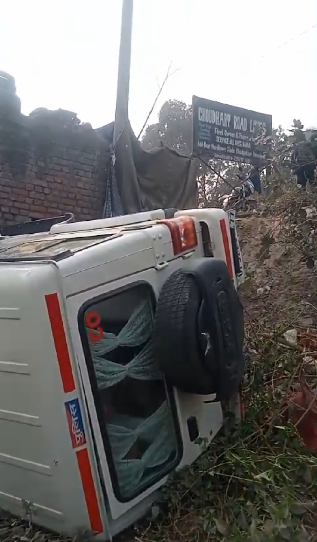 बोलेरो में सवार सीओ पिपरी हर्ष पाण्डेय सहित कई पुलिसकर्मी हुए घायल
