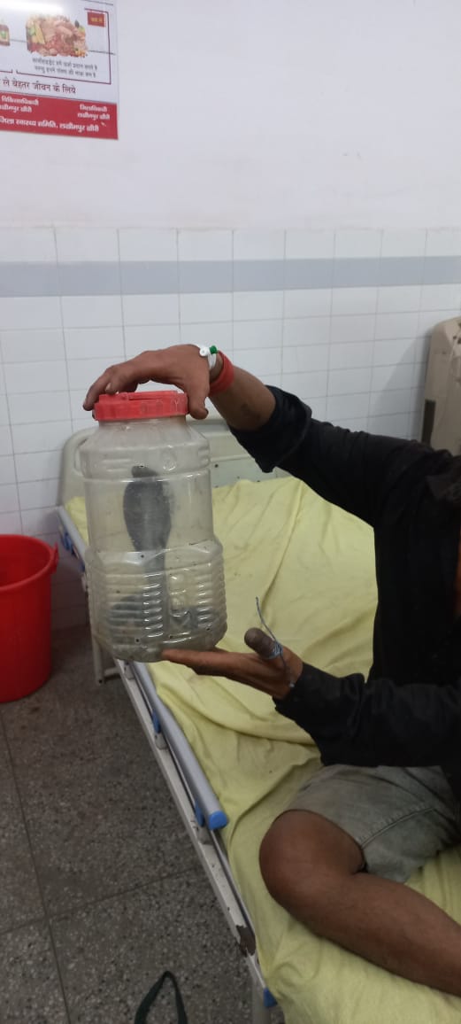 डॉक्टर आर के वर्मा ने बताया एंबुलेंस से एक हरि स्वरूप नाम का मरीज आया था जिसे कोबरा सांप ने काट लिया था जो अब ठीक होकर चला गया है साथ ही मरीज द्वारा लाए गए सांप को वन विभाग की टीम के द्वारा जंगल में छोड़ दिया गया है।