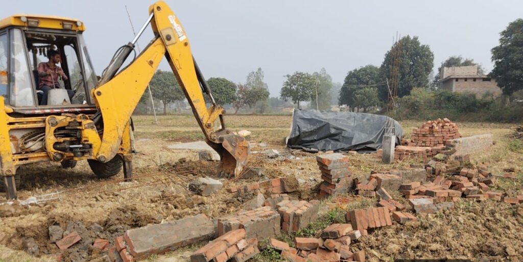 वन विभाग का लगातार एक्शन, आरक्षित वन में फिर चला बुलडोजर, 40 बीघा खाली कराने के बाद पक्का निर्माण ध्वस्त