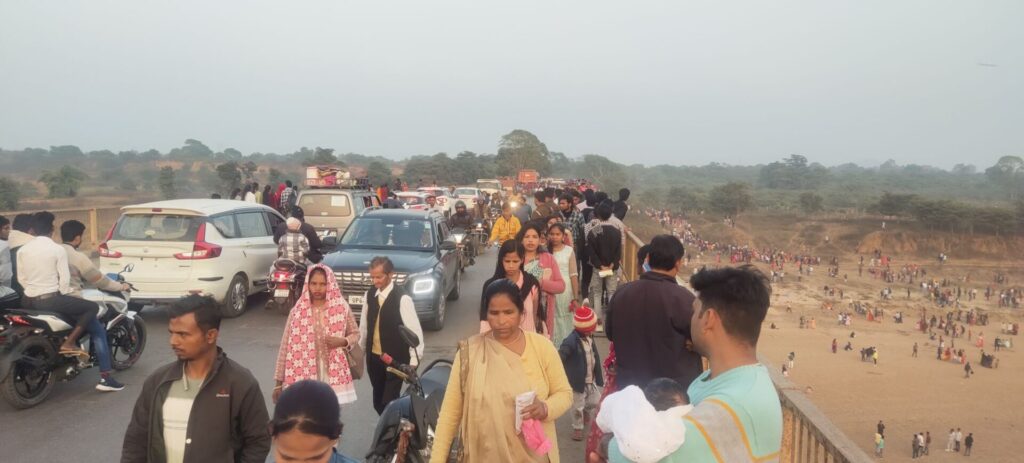 दुद्धी(सोनभद्र): मकर संक्रान्ति के अवसर पर क्षेत्र के कनहर-ठेमा नदी संगम तट एवं अमवार कनहर बांध के समीप आस्था का भारी जन सैलाब देखने को मिला। दुद्धी क्षेत्र के इस संगम तट पर प्रातःकाल से आस्थावानों की टोली परिवार के साथ डुबकी लगाकर अमृत स्नान कर मोक्ष प्राप्त करने की मंगल कामना की। दोपहर बाद लगने वाले पारम्परिक मेले में अबकी ऐतेहासिक भीड़ देखने को मिली। भीड़ को नियंत्रित करने के लिए अबकी पुलिस क्षेत्राधिकारी प्रदीप सिंह चंदेल के दिशा निर्देशन में दुद्धी कोतवाल मनोज सिंह व विंढमगंज एसओ प्रमोद कुमार के साथ एसओ म्योरपुर ने कनहर पुल विशेष इंतजाम कर रखा था। जिससे श्रद्धालुगण मेला का जमकर लुत्फ उठाया।