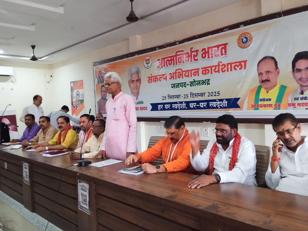 सोनभद्र। भारतीय जनता पार्टी द्वारा आत्मनिर्भर भारत संकल्प अभियान एवं शिक्षक/स्नातक एमएलसी चुनाव को लेकर जिला कार्यालय पर संयुक्त कार्यशाला का आयोजन किया गया। कार्यक्रम के मुख्य अतिथि भाजपा काशी क्षेत्र के क्षेत्रीय उपाध्यक्ष अमरनाथ यादव एवं पूर्व विधायक व एमएलसी चुनाव संयोजक सुरेंद्र सिंह रहे।