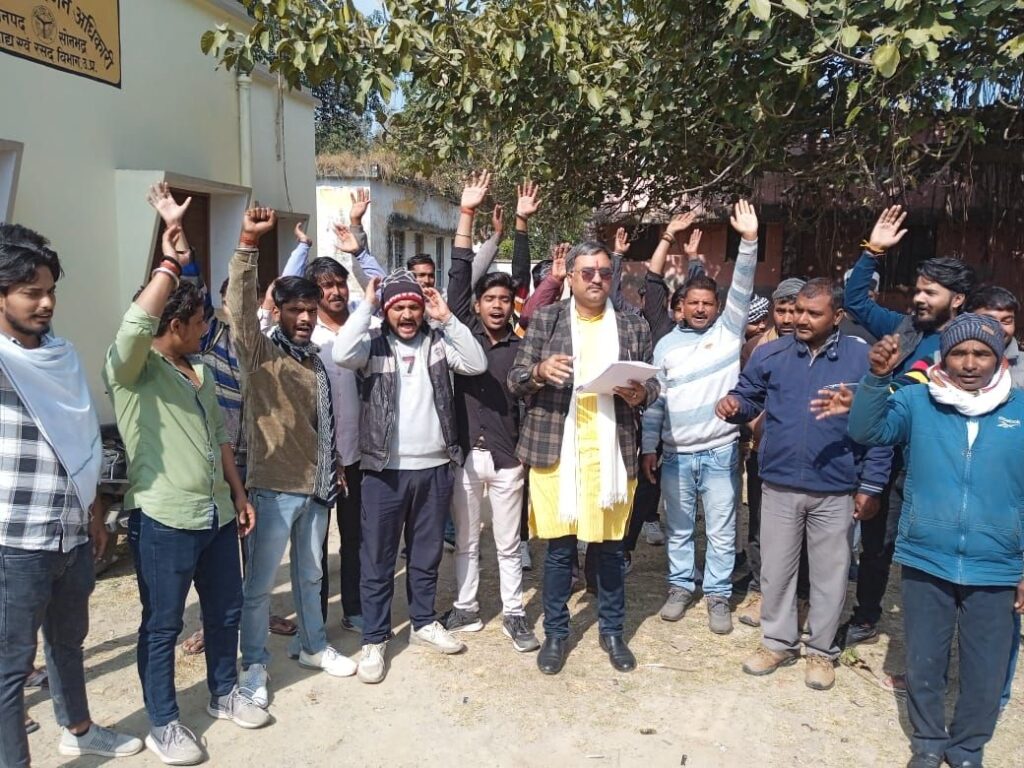 सोनभद्र। धान खरीद में आ रही गंभीर समस्याओं और किसानों के कथित उत्पीड़न को लेकर किसान नौजवान संघर्ष मोर्चा ने बुधवार को जोरदार विरोध प्रदर्शन किया। मोर्चा के संयोजक के नेतृत्व में कार्यकर्ताओं ने विपणन कार्यालय पहुंचकर धान खरीद के लिए बनाई गई सरकारी क्रय नीति की प्रति जलाकर सरकार के प्रति अपना आक्रोश व्यक्त किया।