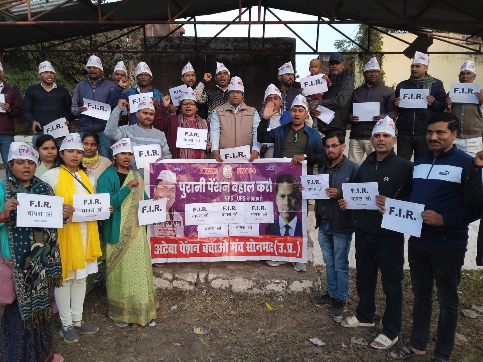 सोनभद्र(उत्तर प्रदेश)। एनएमओपीएस के राष्ट्रीय व अटेवा के आवाहन पर एनएमओपीएस के वरिष्ठ उपाध्यक्ष सुखजीत सिंह सहित अन्य साथियों पर अनावश्यक रूप से एफआईआर दर्ज करने के विरोध में सोनभद्र नगर के रामलीला मैदान में शांतिपूर्ण प्रर्दशन किया गया।