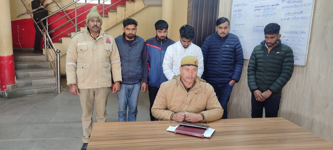 पुलिस ने जियुत निषाद पुत्र स्व० गौरी शंकर निवासी मुस्तफाबाद थाना चौबेपुर वाराणसी उम्र करीब 30 वर्ष, हर्ष यादव उर्फ गोलू यादव पुत्र बल्लू यादव निवासी जाल्हुपुर थाना चौबेपुर जनपद वाराणसी उम्र करीब 20 वर्ष, सुनील यादव पुत्र भरत यादव निवासी ग्राम छितौना जनपद चौबेपुर जनपद वाराणसी उम्र करीब 28 वर्ष, आयूष यादव उर्फ रवि यादव पुत्र कैलाश यादव निवासी गौराकला थाना चौबेपुर जिला वाराणसी उम्र करीब 21 वर्ष और सौरभ यादव पुत्र स्व० तेज बहादुर यादव निवासी पन्ना पुर कुणाव सोनबरसा थाना चौबेपुर जिला वाराणसी उम्र करीब 20 वर्ष को गिरफ्तार किया है।