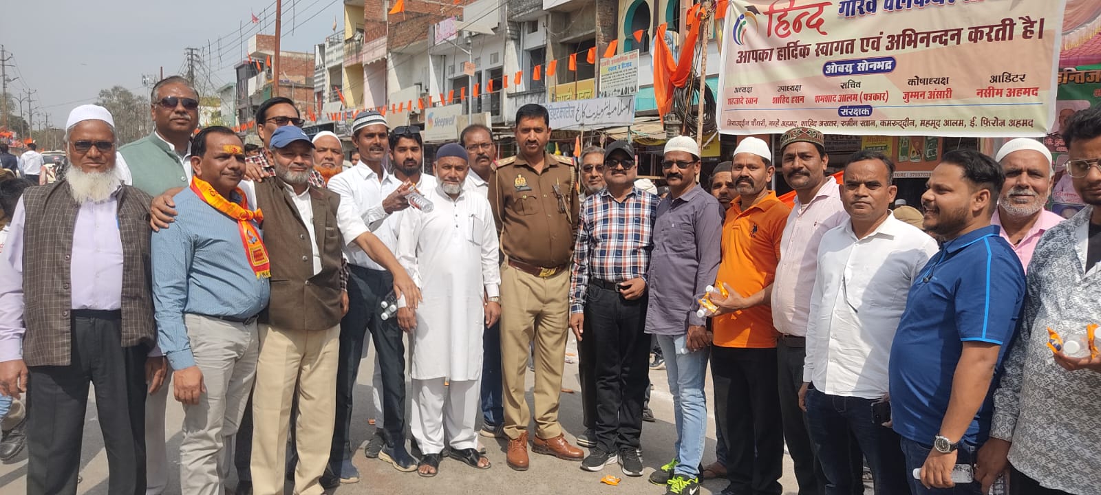 सोनभद्र(उत्तर प्रदेश)। जनपद के ओबरा नगर में उस वक्त गंगा जमुनी तहजीब देखने को मिली जब महाशिव रात्रि के अवसर पर नगर में निकली विशाल शिव बारात का जगह-जगह तोरणद्वार सजा कर स्वागत किया गया तो वही हिन्द गौरव वेलफेयर सोसाईटी ओबरा की ओर से गंगा जमुनी तहजीब की मिशाल पेश करते हुये इस वर्ष भी सदभावनार्थ शिव बारातियो का बढ-चढ कर स्वागत किया गया।