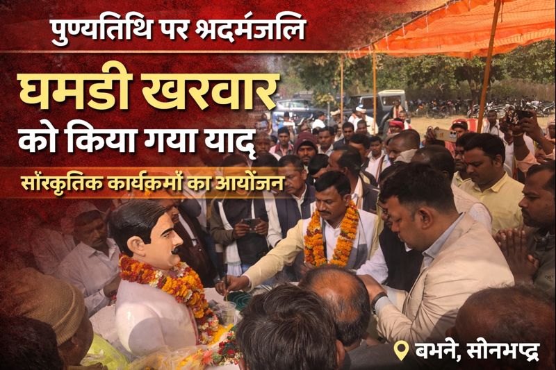 बभनी (सोनभद्र)। खरवार समाज के प्रतिष्ठित समाजसेवी एवं प्रेरणास्रोत रहे घमडी खरवार की पुण्यतिथि के अवसर पर शुक्रवार को बभनी विकासखंड के डगडउआ टोला में भव्य श्रद्धांजलि एवं सांस्कृतिक कार्यक्रम का आयोजन किया गया। कार्यक्रम में बड़ी संख्या में समाज के लोगों ने सहभागिता कर घमडी खरवार के सामाजिक योगदान को स्मरण किया।