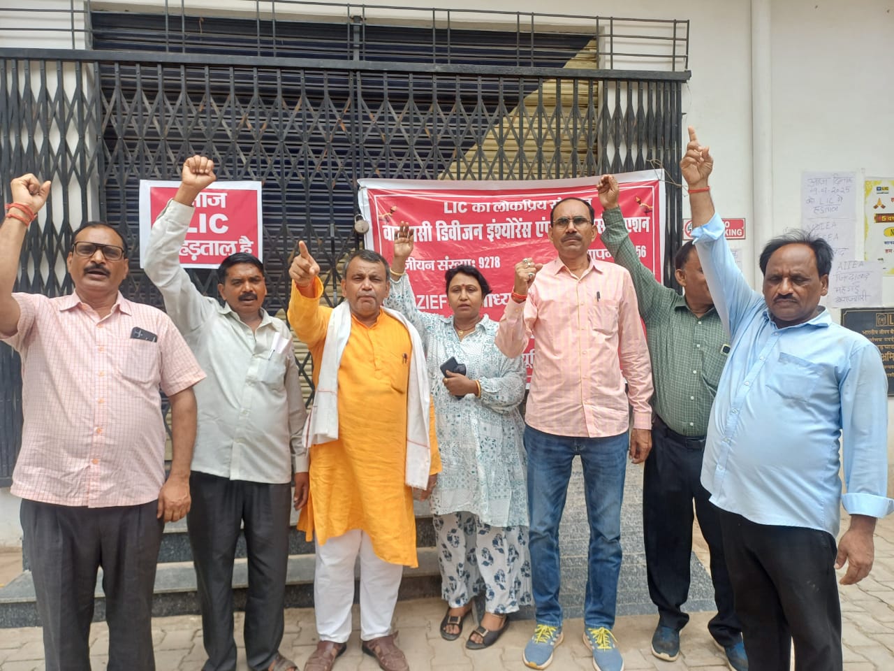 सोनभद्र(उत्तर प्रदेश)। भारत सरकार द्वारा सरकारी संस्थाओं में लगातार परिवर्तन करने से नाराज संस्थाओं के कर्मचारियों ने बुधवार को देशव्यापी हड़ताल कर अपनी मांगों को सरकार के सामने रखा। इस क्रम में सोनभद्र नगर स्थिति भारतीय जीवन बीमा निगम की शाखा के मुख्य द्वार को बंद कर वाराणसी डिवीजन इन्श्योरेन्स इम्प्लॉइज एसोसिएशन के बैनर तले एसोसिएशन के शाखा सोनभद्र नगर के अध्यक्ष प्रेमनाथ तिवारी के नेतृत्व में कर्मचारियों ने सरकार की नीति और नियत के खिलाफ जमकर नारेबाजी की और अपनी मांगों को रखा।
