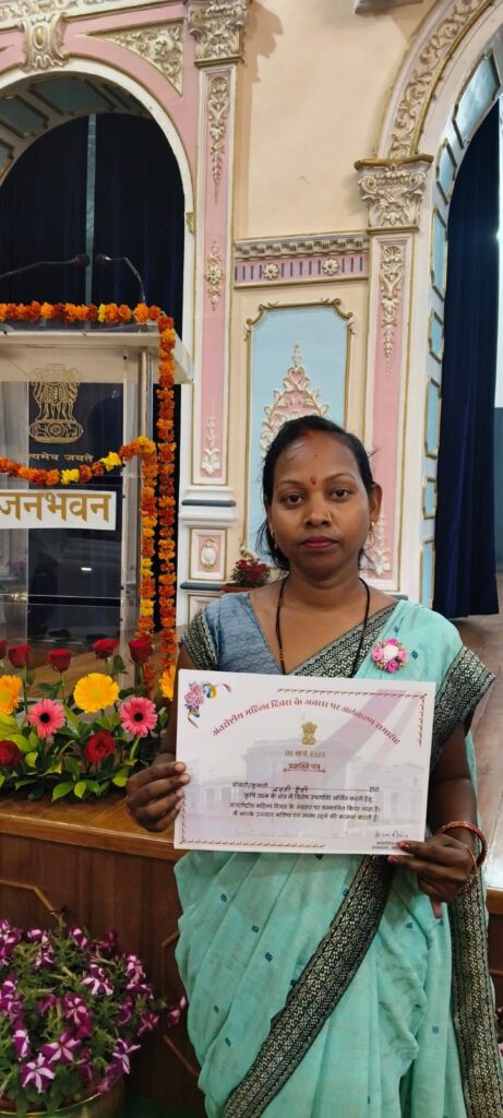 सोनभद्र। दुद्धी प्रगतिशील महिला फॉर्मर प्रोड्यूसर कंपनी, मालदेवा, दुद्धी, सोनभद्र की समूह सदस्य तारावती देवी और अर्चना मौर्य को नमकीन उत्पादन के लिए राज्यपाल उतर प्रदेश आनंदीबेन परेल के द्वारा प्रशस्ति पत्र देकर सम्मानित किया गया है।