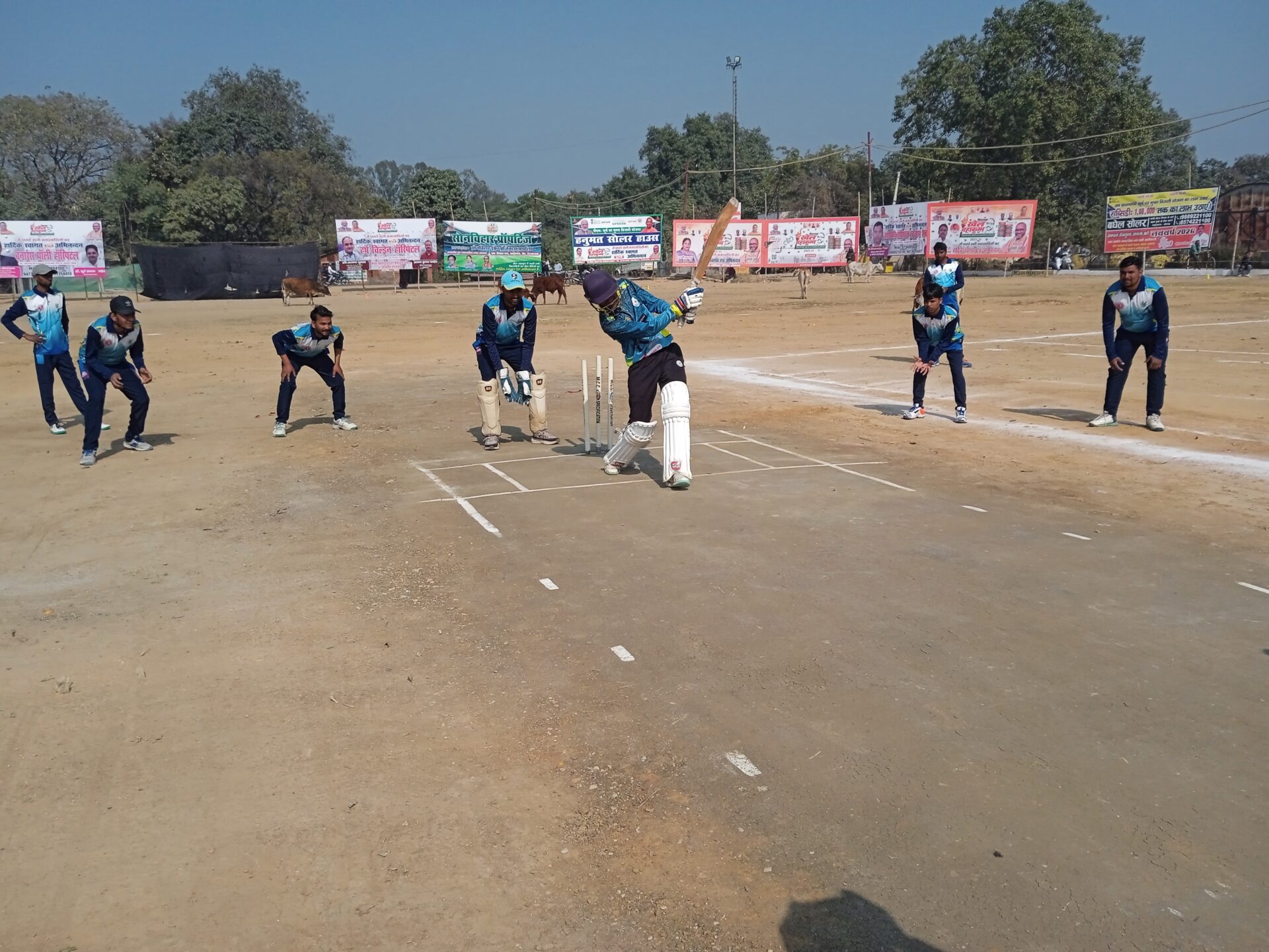 सोनभद्र। सदर विधायक भूपेश चौबे द्वारा आयोजित विधायक खेल महाकुंभ के 20 मंगलवार क्रिकेट मैच का मुकाबला डा एच पी सिंह क्रिकेट एकेडमी और शाहगंज के बीच के द्वारा टास कराकर शुभारंभ किया गया, शाहगंज की टीम टॉस जीत कर पहले क्षेत्र रक्षण करने का फैसला किया, डा0 एच पी सिंह क्रिकेट एकेडमी की टीम टॉस हारकर पहले बल्लेबाजी करते हुए हुए निर्धारित,20 ओवर में 04 विकेट खोकर शानदार 312 रनों का विशाल स्कोर खड़ा किया, इस टीम की तरफ से,राघवेंद्र सिंह ने 10 चौके और 5 छक्के की मदत रन 27 बाल पे 78 रन,आकाश सिंह 30 बाल पे 66 रन तो वहीं शिवांश ने 23 बाल पे 60 रनों का स्कोर बना कर अपनी टीम का स्कोर 300 रनों से पार पहुंचाया,,जवाब में निर्धारित लक्ष्य का पीछा करने उतरी शाहगंज की टीम 20 ओवर के इस मुकाबले में 14.5 ओवर में,ही 141 रन बना कर आल टीम बुक हो गई ,शाहगंज की तरफ, बृजेश ने 28 और विकास 26 रन बनाए.. एच पी सिंह क्रिकेट एकेडमी की तरफ से शानदार गेंदबाजी करते हुए अंशु चौबे ने अपने 02 ओवर में 06 रन देकर 05 विकेट चटकाए,तो वही पंकज ओझा ने 02 विकेट चटकार अपनी टीम डा0HP सिंह क्रिकेट एकेडमी को 172 रनों से जीत दिला कर आगामी मैच में अपनी जगह पक्की कर, डा एच पी सिंह क्रिकेट एकेडमी की तरफ से शानदार गेंदबाजी करने वाले अंशु चौबे जी 05 विकेट लेने वाले को भाजपा वरिष्ठ नेता व रामदरबार समिति के महामंत्री प्रमोद गुप्ता युवा मोर्चा जिला उपाध्यक्ष अतुल पांडे विकाश मिश्रा के द्वारा मैंन आफ द मैच का पुरस्कार दिया गया,,खेल में, रॉबर्ट्सगंज के वरिष्ठ क्रिकेटर राम सिंह,पूर्व ब्लाक प्रमुख रमेश मिश्रा,नगर महामंत्री अनूपम त्रिपाठी पूर्व जिला मंत्री सुनील सिंह,पूर्व नगर अध्यक्ष संजय जायसवालमहेवा ग्राम प्रधान निशांत पटेल पूर्व नगर अध्यक्ष भाजपा बलराम सोनीसभासद अनवर अली, अमन वर्मा नवल बाजपेई विकास मिश्रा,शमनोज सोनकर, व अन्य सभी खेल प्रेमी उपस्थित रहे,,