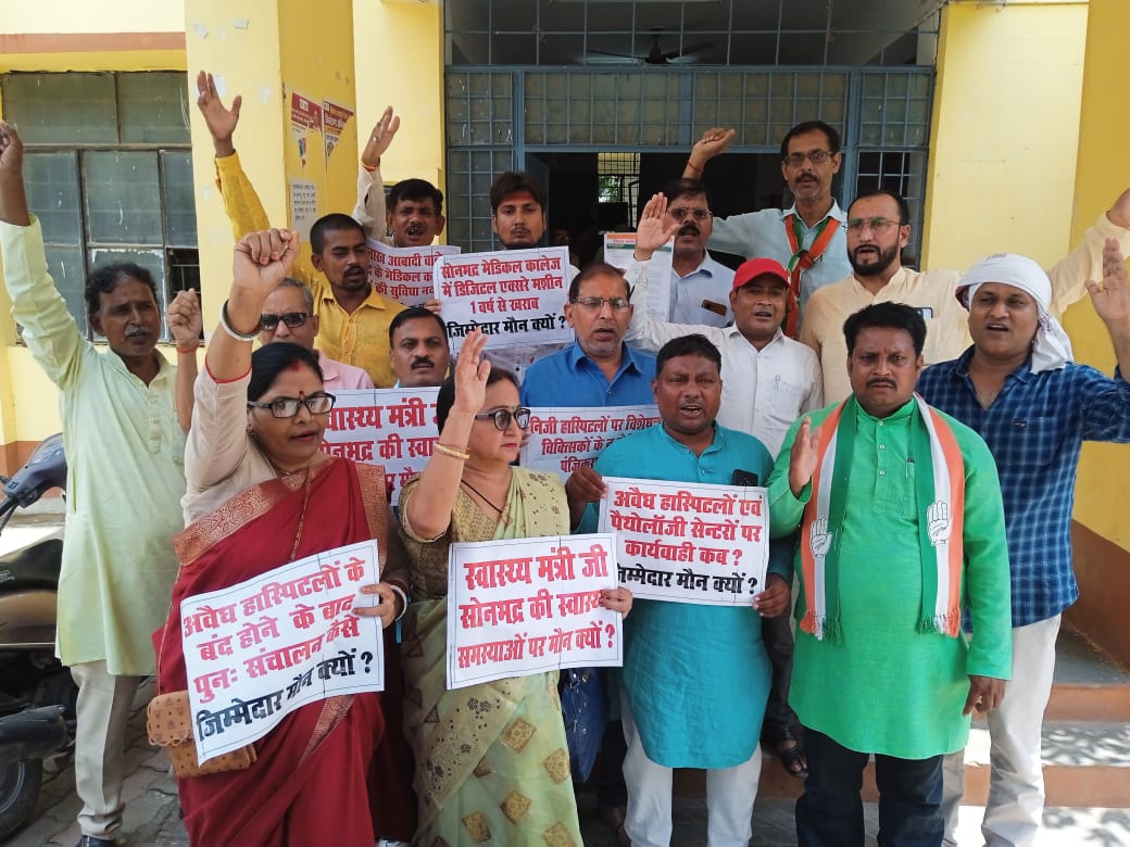 सोनभद्र(उत्तर प्रदेश)। जिले मे अवैध रूप से संचालित हास्पिटल , पैथोलॉजी सेन्टरो को बंद कराने, मेडिकल कालेज मे आईसीयू और डिजिटल एक्सरे को चालू कराने, मेडिकल कालेज को सहित तमाम मुद्दों को लेकर कांग्रेस कार्यकर्ताओं ने मुख्य चिकित्साधिकारी कार्यालय पहुंचकर विरोध प्रदर्शन किया।