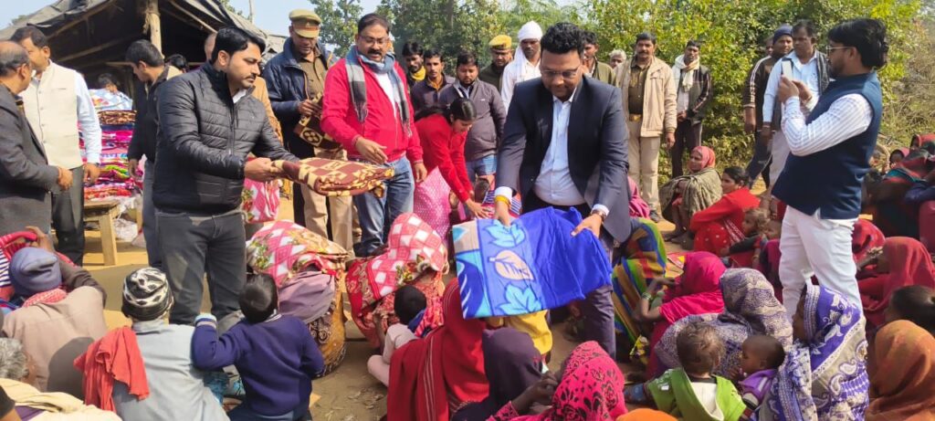 नौगढ़ के सुदूर गांवों में कंबल वितरण, डीएम की प्रेरणा से आगे आया उद्योग जगत