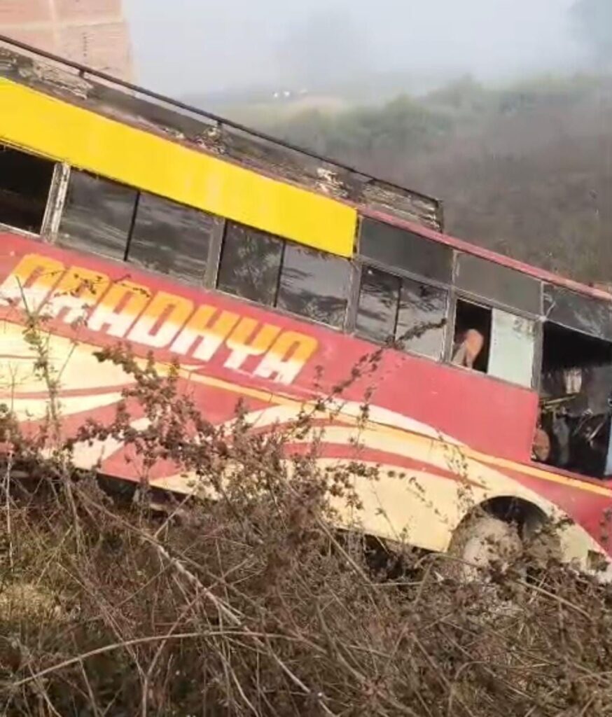कोन में बड़ा हादसा टला: स्टेयरिंग फेल होने से यात्रियों से भरी बस खाई में गिरी