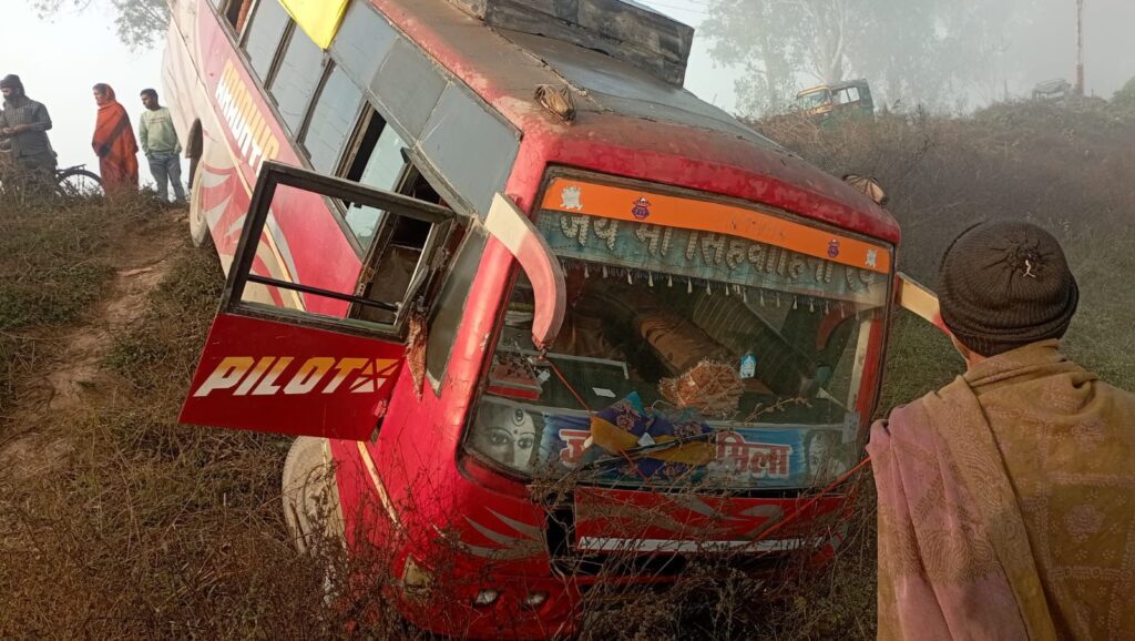 घटना सुबह करीब 9 बजे की बताई जा रही है। हादसे के दौरान बस में अफरा-तफरी मच गई। दुर्घटना में एक यात्री गंभीर रूप से घायल हो गया, जबकि अन्य यात्रियों को हल्की-फुल्की चोटें आई हैं। गंभीर रूप से घायल यात्री के सिर में गहरी चोट आई है।