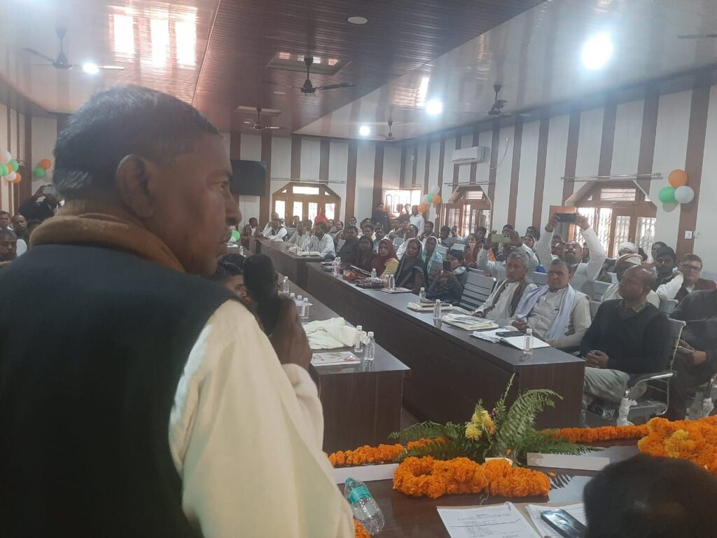 कार्यक्रम मे आये विशिष्ठ अतिथि ने आशुतोष सिन्हा एमएलसी अपने सम्बोधन कहा की यह क्षेत्र विकास के नजरीय से अभी बहुत पिछडा है क्षेत्र पंचायत सदस्य गाँव के विकास का मुख्य कड़ी है मुख्य अतिथि विजय सिंह गोड़ ने कहा की क्षेत्र पंचायत सदस्यों के साथ सरकार भेद भाव कर रही है क्षेत्र पंचायत से जो भी विकास आ रहा है उस पर ठेकेदारी हावी हो जा रहा है जो भी गाँव मे कार्य हो क्षेत्र पंचायत सदस्यों के जानकारी मे हो एव बिना उनके मुहर दसखत के बिना कार्य की मंजूरी न मिले उन्होंने कहा की सरकार हर घर नल योजना के अंतर्गत हर घर को पानी देने जा रही है आपको इस सदन के माध्यम से बता दू की रिहन्द का पानी दूषित हो चूका है।