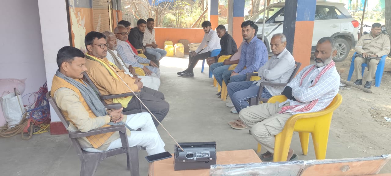 बभनी (सोनभद्र) । प्रधानमंत्री नरेन्द्र मोदी के लोकप्रिय कार्यक्रम ‘मन की बात’ के 128 वें संस्करण के प्रसारण को म्योरपुर मंडल के बूथ संख्या-44 रासपहरी पर पार्टी कार्यकर्ताओं के साथ सुनते हुए दर्जा प्राप्त राज्यमंत्री जीत सिंह खरवार ।