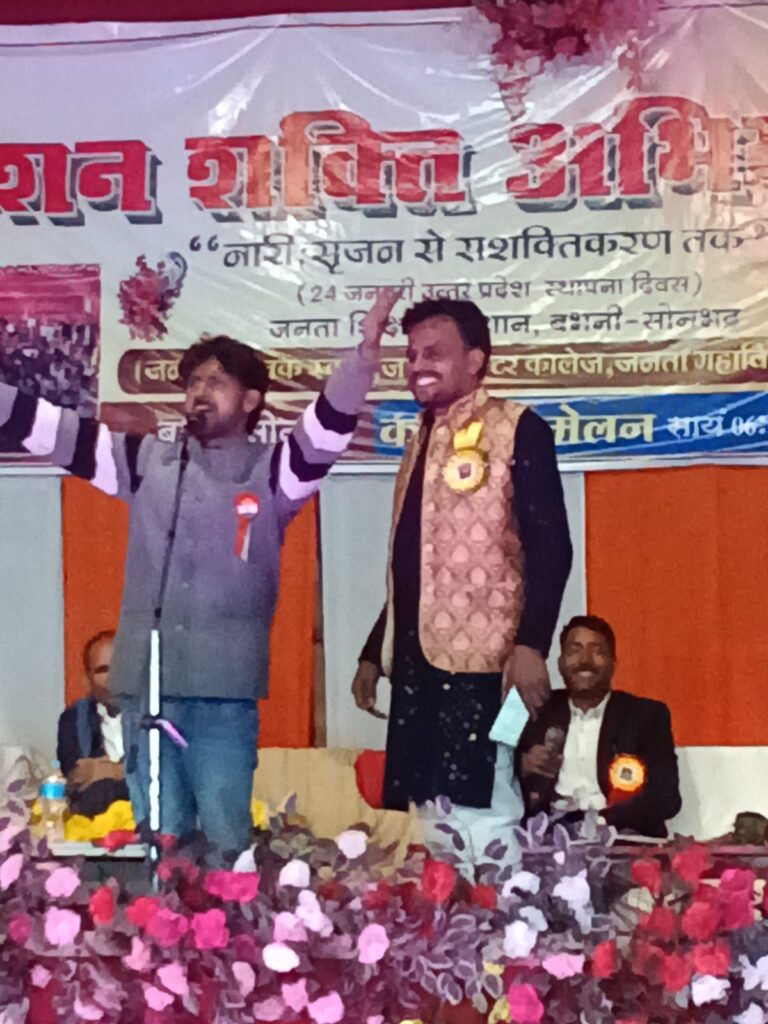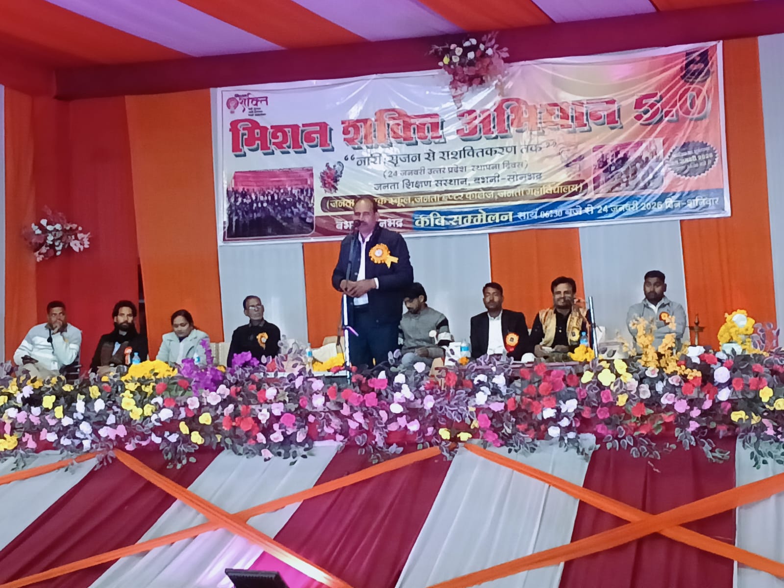 बभनी (सोनभद्र)। उत्तर प्रदेश स्थापना दिवस एवं मिशन शक्ति अभियान – नारी सृजन से सशक्तिकरण के अंतर्गत शनिवार की संध्या जनता शिक्षण संस्थान में एक भव्य कवि गोष्ठी का आयोजन किया गया। साहित्य और संवेदना से ओत-प्रोत इस कवि सम्मेलन में विभिन्न क्षेत्रों से आए कवियों की रचनाओं पर श्रोता देर रात तक मंत्रमुग्ध होकर झूमते रहे।