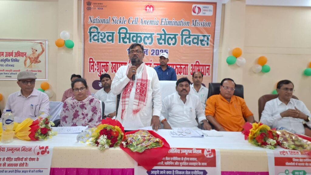 दुद्धी। विश्व सिकल सेल दिवस के अवसर पर नगर पंचायत दुद्धी में गुरुवार को बहुउद्देश्यीय सभागार में आयोजित कार्यक्रम में राज्यमंत्री संजीव गोंड ने लोगों को सिकल सेल एनीमिया जैसी गंभीर बीमारी को लेकर जागरूक किया। उन्होंने कहा कि यह रोग छुआछूत नहीं बल्कि एक आनुवंशिक विकार है, जिससे समय पर परामर्श, जांच और जागरूकता से बचा जा सकता है।