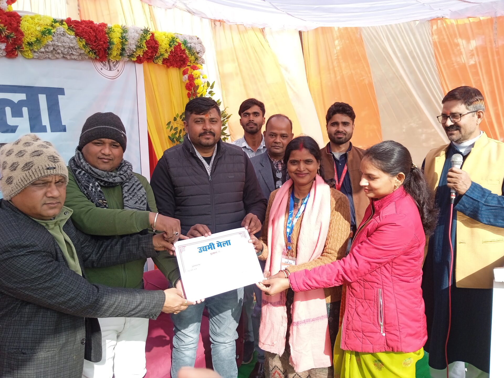सोनभद्र। बुधवार को डेवलपनेट अल्टरनेटिव एव मानवीय दृष्टिकोण सेवा समिति के संयुक्त तत्वाधान में जिला मुख्यालय स्थित विवेकानंद प्रेक्षा गृह प्रांगण में उद्यमी मेला का आयोजन किया गया। मुख्य अतिथि यूपीएसआरएलएम से डीएमएम एमजी रवि ने कार्यक्रम का दीप प्रज्वलन करके प्रारंभ किया। इस अवसर पर जीएसएस के प्रबंधक जितेंद्र कुमार वर्मा और कृषि विज्ञान केंद्र से रश्मि कविता ने उद्यमी मेले में लगाए स्टॉल की प्रशंसा की। महिलाओं द्वारा तैयार किए गए पारंपरिक और गैर पारंपरिक उत्पादों का निरीक्षण किया गया और उन्हें बेहतर बनाने के लिए दिशा निर्देश दिए गए। एमजी रवि और रश्मि ने बताया कि महिलाओं को सरकारी योजनाओं और कौशल प्रशिक्षण के आधार पर बिजनेस आइडिया से संयोजित व्यवसाय करना चाहिए। मार्केट रिसर्च करके घरेलू जरूरत की सामग्री बनाने के लिए महिलाओं को प्रेरित किया गया। अधिकारियों ने महिलाओं का उत्साहवर्धन किया और उन्हें आत्मनिर्भर बनाने के लिए प्रेरित किया। इस मौके पर आरती, सावित्री, धर्मशिला, निर्मला आदि महिलाओं ने अपने अनुभवों को व्यक्त किया। इस अवसर पर हेमा राम, सजीवन दुबे, प्रतिभा, इशा शुक्ला, रोशन लाल, जानवी, अनुराग आदि लोग उपस्थित रहे।