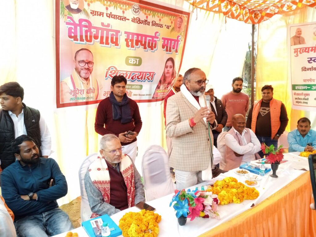 सोनभद्र। सदर विकास खंड क्षेत्र के बेठिगांव संपर्क मार्ग का मंगलवार को सदर विधायक भूपेश चौबे ने शिलान्यास किया। लोक निर्माण विभाग के अधिकारियों को सड़क का निर्माण कार्य जल्द शुरू करने का निर्देश दिया। इस दौरान उन्होंने मुख्यमंत्री आवास योजना व आयुष्मान योजना के लाभार्थियों में प्रमाण पत्र एवं कार्ड वितरित किया। इस दौरान उपस्थित जनता को संबोधित करते हुए सदर विधायक ने कहा कि केंद्र और प्रदेश की भाजपा सरकार पढ़ाई से लेकर दवाई तक छत से लेकर इज्ज़त तक सबका ख्याल रख रही है।