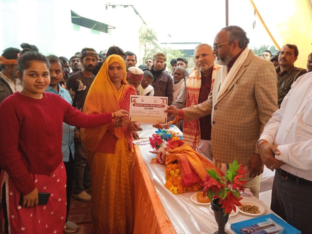 O- मुख्यमंत्री आवास योजना के लाभार्थियों में वितरित किया प्रमाण पत्र