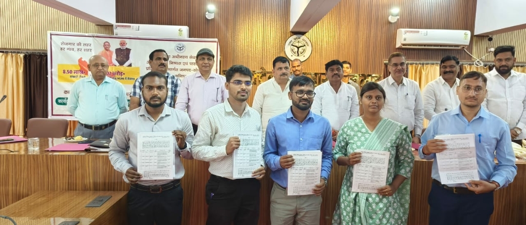 जनपद के कलेक्ट्रेट सभागार में मुख्य अतिथि समाज कल्याण मंत्री संजीव कुमार गोंड द्वारा उपस्थित पांच नवनियुक्त कनिष्ठ सहायको देवेश चतुर्वेदी, कुलदीप पटेल, संतोष कुमार, पूजा जायसवाल एवं सूरज कुमार गौतम को नियुक्ति पत्र प्रदान किया गया। इस दौरान समाज कल्याण मंत्री ने नवनियुक्त कनिष्ठ सहायकों को बधाई एवं उज्जवल भविष्य की शुभकामना दी।