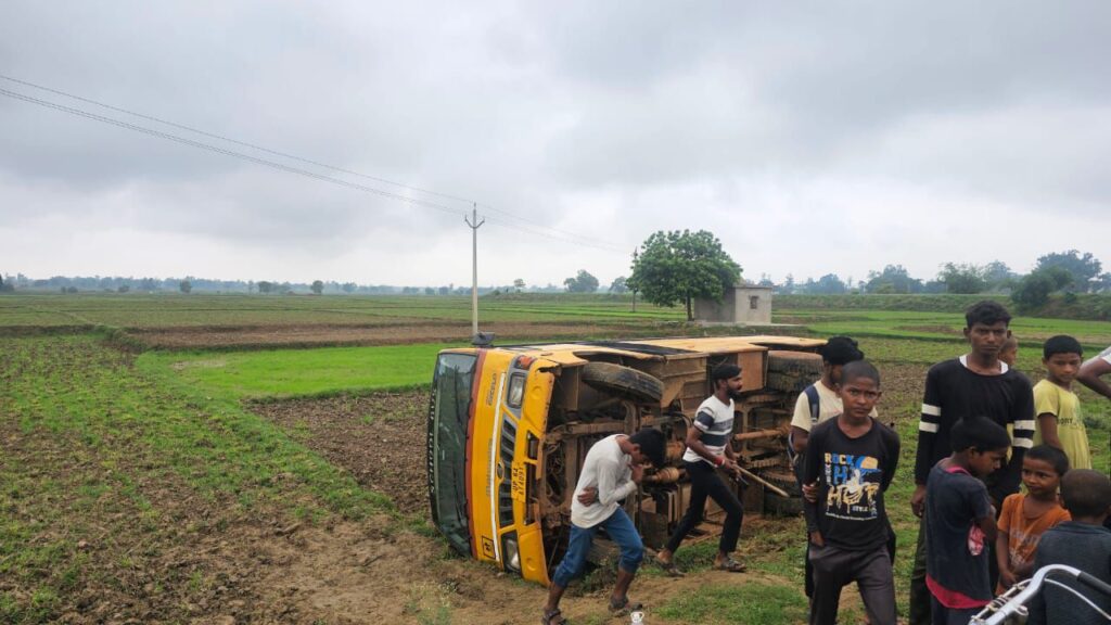 स्थानीय लोगों ने बताया कि गीली मिट्टी से बस फिसलने लगा और सड़क के नीचे खेत में चला गया जिससे बस पलट गया। यदि बस में अधिक बच्चे होते या रफ्तार तेज होती, तो यह हादसा जानलेवा साबित हो सकता था।