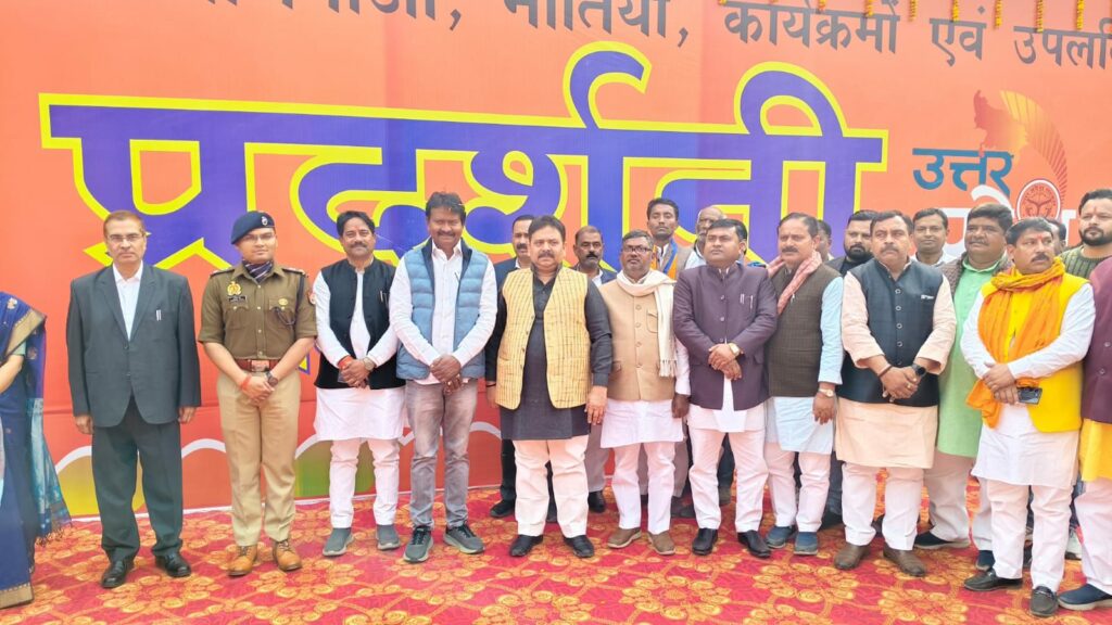 उत्तर प्रदेश दिवस के अवसर पर प्रभारी मंत्री ने प्रदेश सरकार की जनकल्याणकारी योजनाओं व उपलब्धियों पर आधारित कलेक्ट्रेट परिसर में सूचना एवं जन सम्पर्क विभाग द्वारा लगायी गयी प्रदर्शनी का फीता काटकर शुभारंभ किये। इस दौरान प्रभारी मंत्री ने कहा कि इस प्रदर्शनी के माध्यम से जनमानस प्रदेश सरकार द्वारा संचालित जन कल्याणकारी योजनाओं की जानकारी प्राप्त कर सकते हैं।