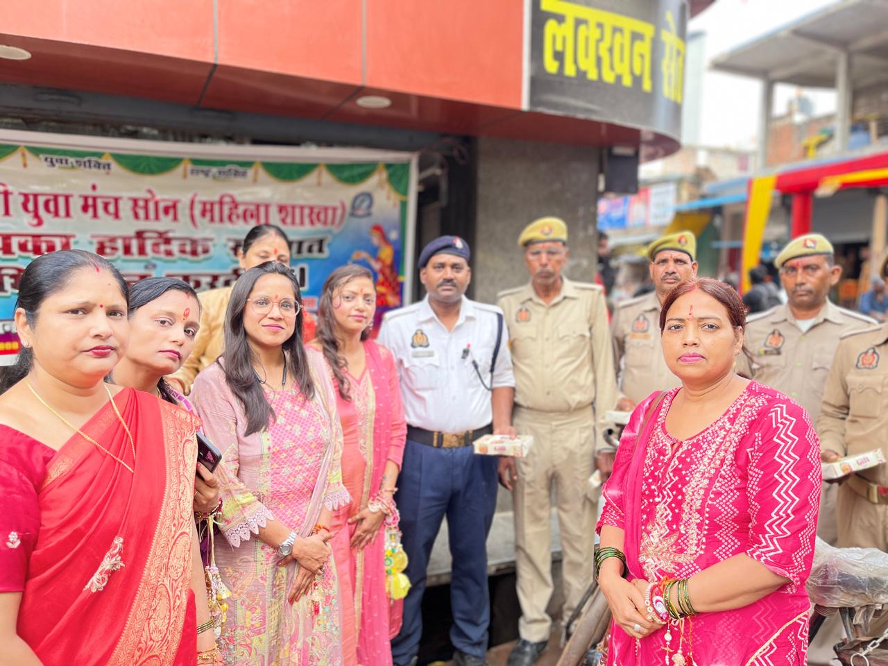पुलिसकर्मियों को मारवाड़ी युवा मंच सोन महिला ने बांधी राखी