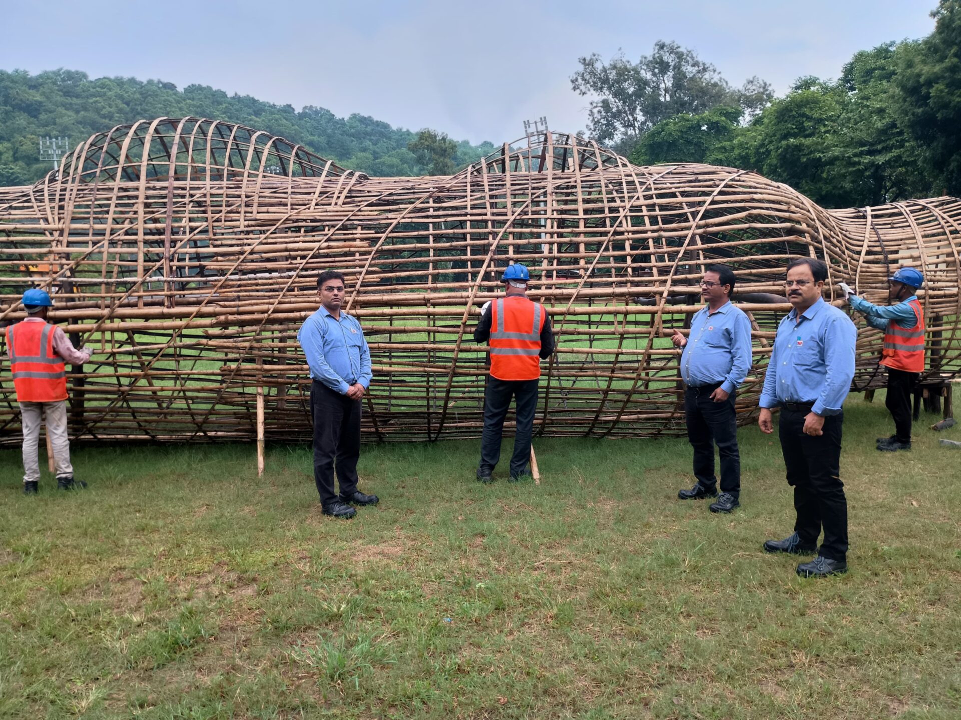 विजय दशमी की तैयारी जोरो पर, रेनुसागर में बन रहा 65 फीट का रावण
