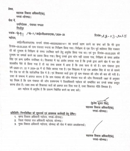 एडीओ पंचायत के संरक्षण में नगवां ब्लॉक के ग्राम पंचायतों में खूब फल फूल रहा भ्रष्टाचार