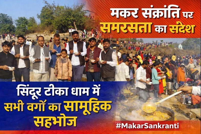 बभनी (सोनभद्र)। मकर संक्रांति के पावन अवसर पर उत्तर प्रदेश के सोनभद्र जनपद अंतर्गत बभनी प्रखंड स्थित सिंदूर टीका धाम में सामाजिक समरसता को सशक्त करने हेतु भव्य सहभोज कार्यक्रम का आयोजन किया गया। इस आयोजन में समाज के विभिन्न वर्गों के लोगों ने जाति-धर्म से ऊपर उठकर एक साथ भोजन कर एकता और भाईचारे का संदेश दिया।