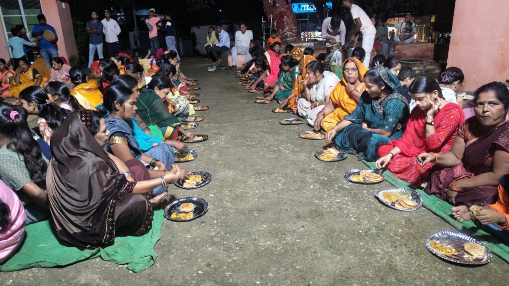 बीते रविवार की शाम लगभग 5:00 से ही क्षेत्र के सैकड़ो महिलाऐं पूर्व क्षेत्र पंचायत सदस्य विमला देवी के नेतृत्व में प्रमिला देवी शीला देवी शांति देवी उर्मिला देवी प्रतिमा देवी गीता देवी उत्तम देवी आरती देवी पूजा देवी सावित्री देवी शांति देवी रेखा देवी सुषमा देवी सहित दर्जनों महिलाओं की टीम ने मां काली मंदिर के परिसर में ही ढोल, करताल, झाल के मधुर ध्वनि के साथ भगवान श्री कृष्ण के छठी उत्सव में सोहर गीत गया गया “नंद के घर आनंद भयो जग में उजाला भेल हो,” केहू लुटावे अन धन सोनावा, मां यशोदा लुटावे धेनु गईया हो”