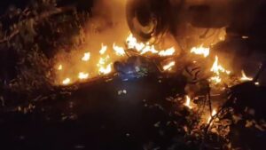 ट्रैक्टर पलटने के बाद लगी आग चालक चालक हो गया कंकाल