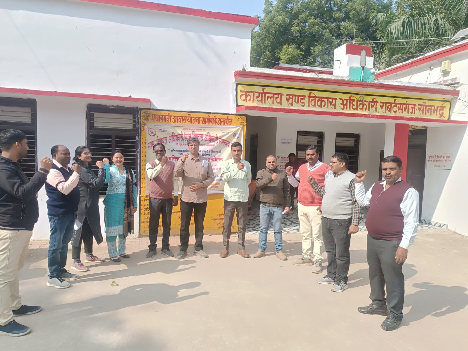सोनभद्र(उत्तर प्रदेश)। जनपद के सभी विकास खण्डो में ऑनलाइन उपस्थिति और फील्ड इंस्पेक्शन सिस्टम लागू किए जाने के विरोध में पंचायत अधिकारी एवं ग्राम विकास अधिकारी समन्वय समिति के आह्वान पर लगातार चौथे दिन भी गुरुवार को भी पंचायत कर्मियों ने काली पट्टी बांधकर शांतिपूर्ण सत्याग्रह किया।