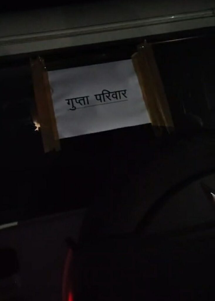 छत्तीसगढ़ पुलिस के वाहन पर गुप्ता परिवार का स्टिकर और बगैर हाई सिक्योरिटी नम्बर प्लेट लगा था